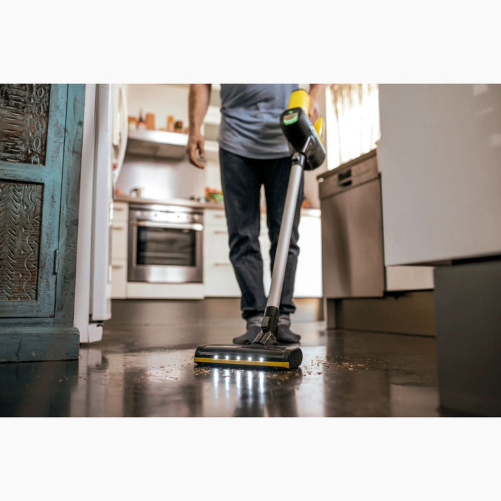 مكنسة كهربائية عمودية صفراء لاسلكية تعمل لمدة 50 دقيقة