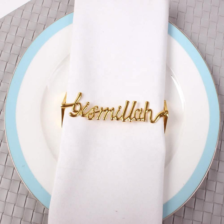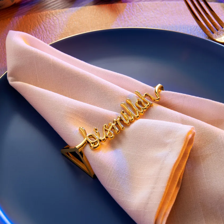 ارتقي بتجربة تناول الطعام مع حلقات مناديل "بسم الله" الذهبية الرائعة. تجمع هذه الحلقات بين العملية والأناقة، مما يجعلها إضافة مثالية لأي مناسبة خاصة.