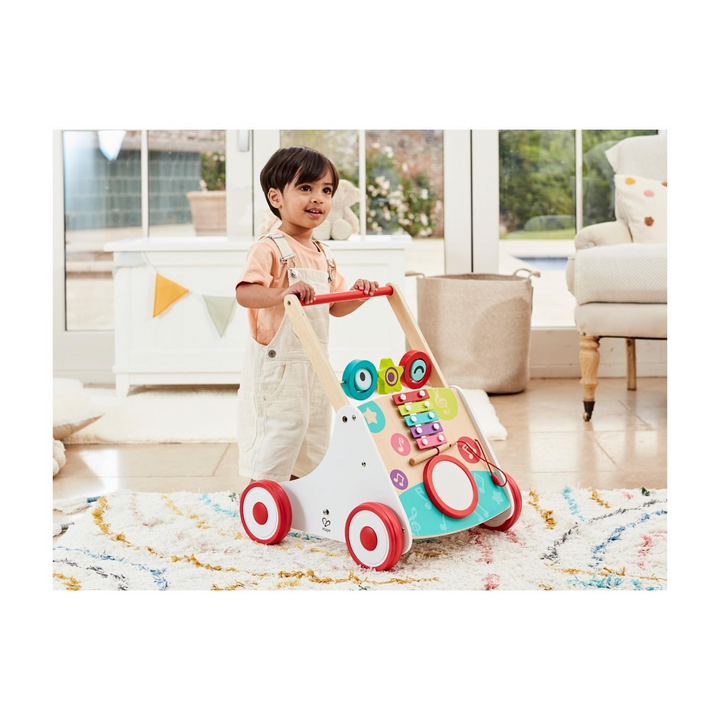 Introduce your toddler to the world of music and movement with this innovative Multi-Activity Musical Wooden Walker. Crafted for children aged 12 months and up, this walker is designed to inspire exploration and development through engaging play. With its beautifully crafted wooden structure, it offers both a sturdy support for first steps and a stimulating environment for early learning.