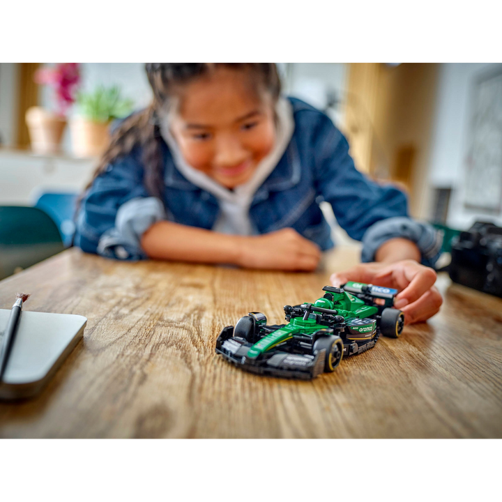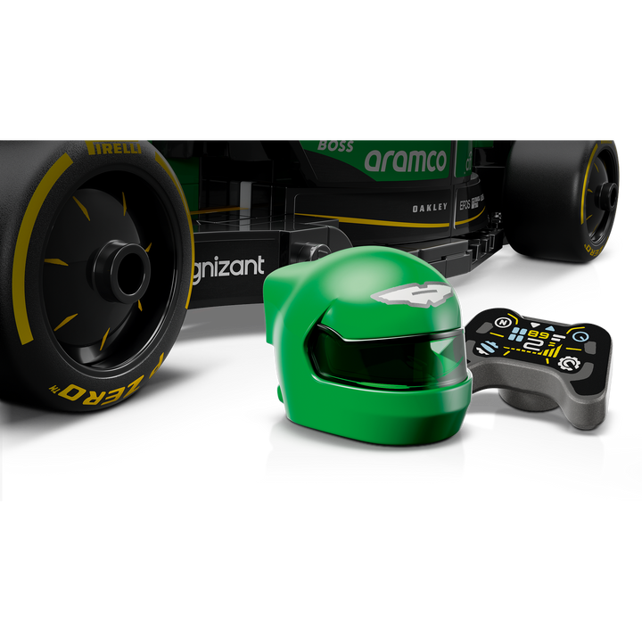 - Authentic Aston Martin Aramco F1 AMR24 design- Includes a driver minifigure with Aston Martin Aramco F1 outfit and winged helmet