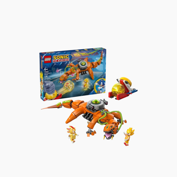 Dive into a universe of heroic clashes as Super Shadow and Super Sonic face off against the formidable Biolizard. This collectible LEGO Sonic the Hedgehog toy is designed to inspire engaging role-play scenarios, allowing builders to defend the Space Colony ARK or embark on daring missions to retrieve the precious Chaos Emerald.