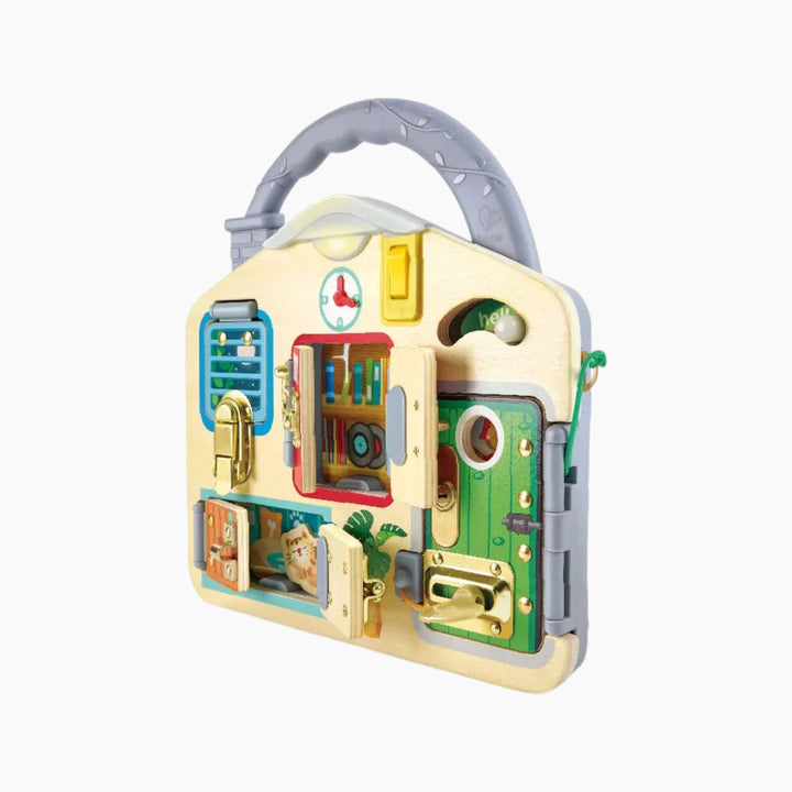 This interactive wooden playboard is designed to captivate young minds, offering an engaging experience that fosters fine motor skills and enhances problem-solving abilities. With its array of real locks, latches, and small doors, children aged 3 years and up are encouraged to explore and develop hand-eye coordination in a fun, safe environment.