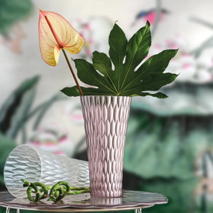 يبلغ ارتفاع مزهرية لوتو 30 سم، مما يجعلها خيارًا مثاليًا لمجموعة متنوعة من الاستخدامات. يعكس تصميمها الراقي إرث IVV العريق في التميز في صناعة الزجاج يدويًا، والذي تأسس عام 1952. لا يُعزز لون المزهرية الأرجواني الفاتح جاذبيتها الجمالية فحسب، بل يُبرز أيضًا التزام العلامة التجارية بالحرفية، حيث تمزج التصميم المبتكر مع التقنيات الحرفية التقليدية.