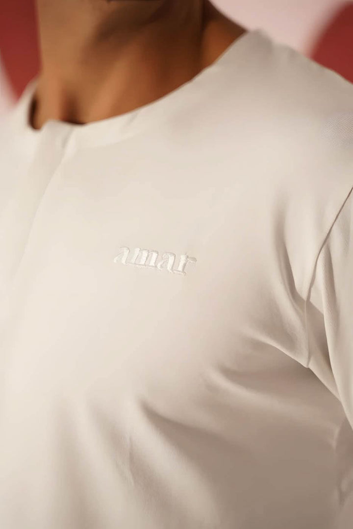 - تفاصيل القميص: ياقة مستديرة بأزرار مخفية، تطريز "Love Language" على الأكمام.