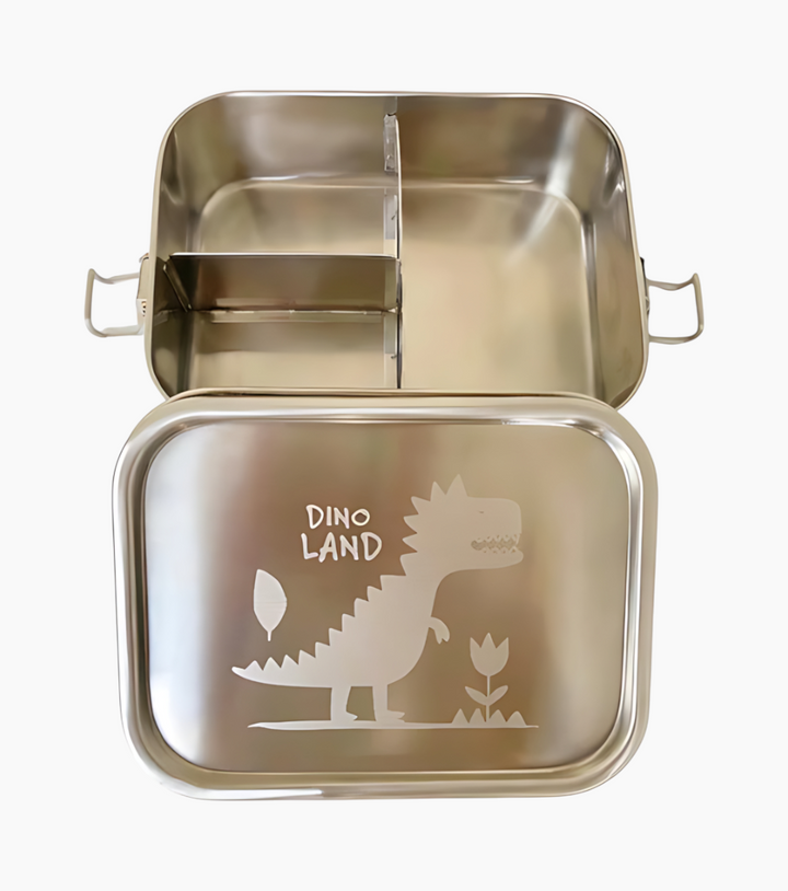 Transform lunchtime with this premium Stainless Steel Lunch Box featuring a vibrant dino design. Crafted from high-quality, food-grade stainless steel, this lunch box ensures safety with its BPA-free material that won’t leach into food, offering a healthier alternative to plastic containers. Its sleek design includes three convenient compartments, making it perfect for separating a variety of dishes like sandwiches, salads, and snacks, all while being portable and stylish.