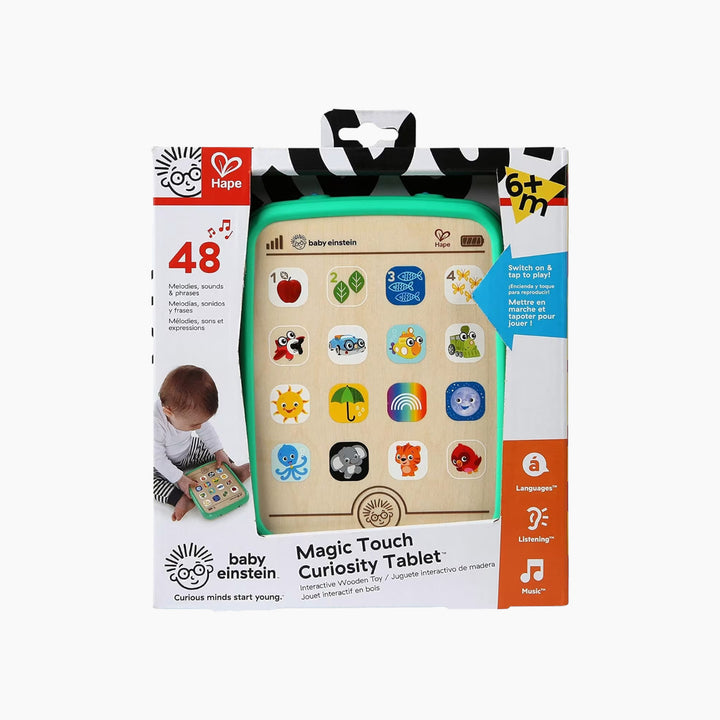 Discover an engaging interactive learning experience for curious little minds with the Magic Touch Curiosity Tablet. Designed for babies aged 6 months and up, this FSC-certified educational toy combines entertainment with essential developmental skills. Crafted from sustainable wood and safe plastic, it offers a touch-sensitive surface featuring captivating educational sounds, music, and interactive icons that introduce shapes, colors, animals, and sounds.