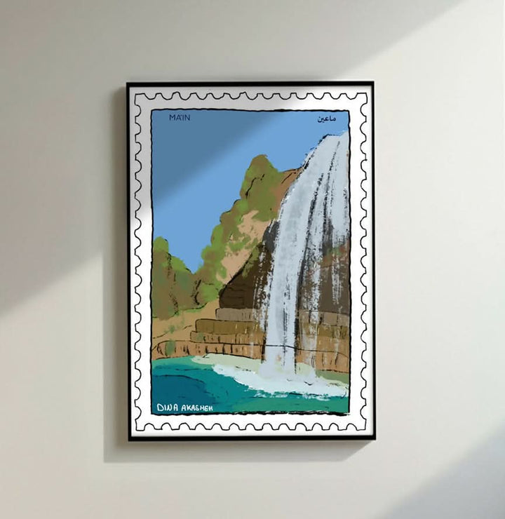 لوحة "ماعين" للفنانة دينا عكشةتُعدّ لوحة "ماعين" للفنانة دينا عكشة تحيةً مُنعشة لإحدى عجائب الأردن الطبيعية المحبوبة. صُممت هذه اللوحة على شكل طابع بريدي، وتُصوّر ببراعة...