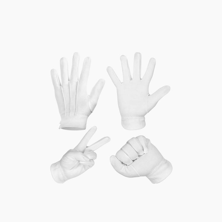 - قفازات بيضاء: ناعمة ومرنة لسهولة الحركة.