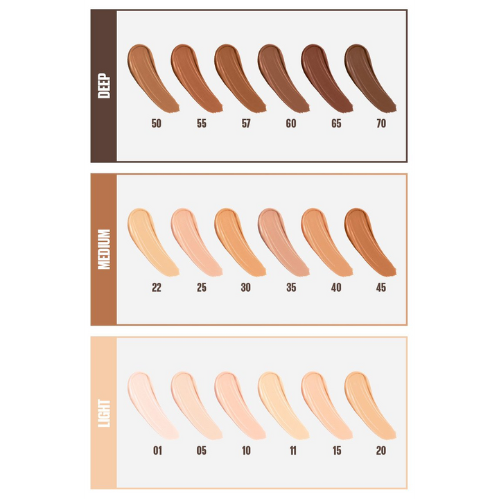 فاتح بدرجة لون محايدة - يُضفي إشراقة وتغطية خفيفة على البشرة الفاتحة.