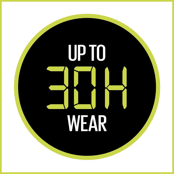 يدوم حتى 30 ساعة، مقاوم للتعرق والماء.
