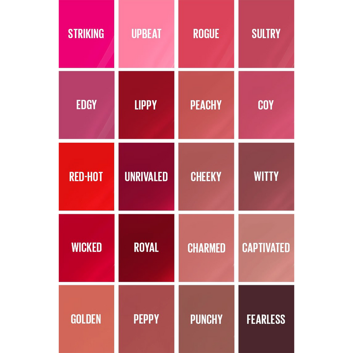 وردي جريء، لون خوخي ناعم، لون نود وردي بلمسة نهائية لامعة، أحمر توت غني، لون نود دافئ، أرجواني ناعم، برقوقي غامق، أحمر وردي-أحمر كلاسيكي