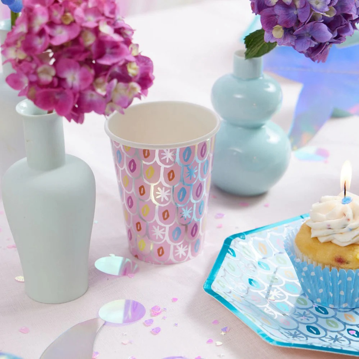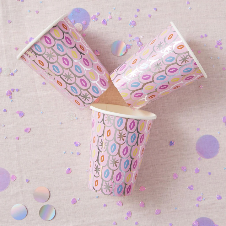 نقدم لكم أكوابنا الورقية الآسرة "تحت البحر"، المصممة لإضفاء لمسة مميزة على حفلات أعياد ميلادكم ذات الطابع البحري! انغمسوا في عالم من عجائب المحيط مع هذه الأكواب الوردية الرائعة للاستخدام مرة واحدة، والمزينة بتفاصيل فضية ساحرة وطبعة حراشف سمكة ساحرة.