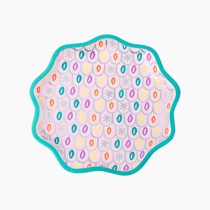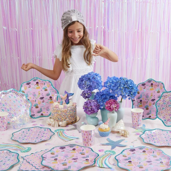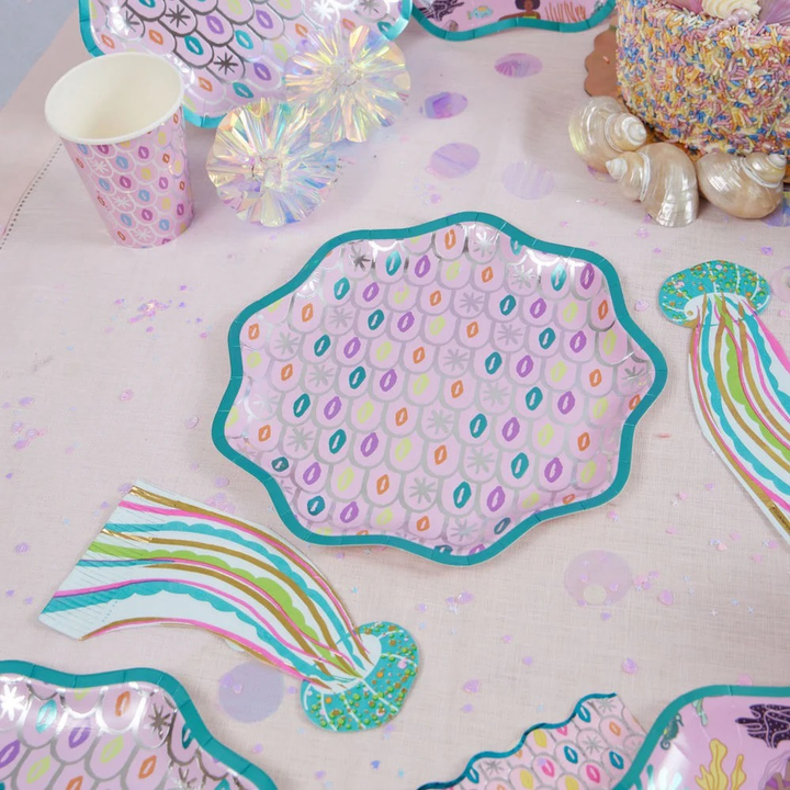 أبهري ضيوفك في حفلتك القادمة بأطباقنا الورقية المستوحاة من عالم البحار! تتميز هذه الأطباق بشكلها الفريد والمرح، مع لمسة نهائية لامعة من رقائق معدنية ستلفت الأنظار! اللون الوردي مزين برسومات حورية البحر وألوان زاهية، مما يجعلها مثالية لأي حفلة بطابع عالم البحار أو حورية البحر! هذه الأطباق ليست أنيقة فحسب، بل متينة أيضًا، ومثالية لحمل جميع الوجبات الخفيفة والحلويات. انغمسي في المرح وأضيفي أطباق عشاء حورية البحر هذه إلى لوازم حفلتك اليوم!