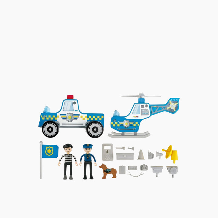 Unleash a world of imagination and creativity with this Metro Police Dept Playset, a city-themed wooden station designed for exciting pretend play. Perfect for young adventurers...