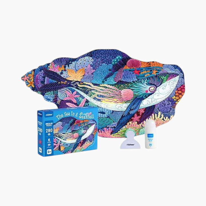 Embark on an extraordinary underwater journey with the Mideer Large Animal Puzzle, "The Sea In A Seashell." This beautifully designed puzzle offers a captivating glimpse into the ocean's wonders, presented in a unique and engaging format perfect for young adventurers.