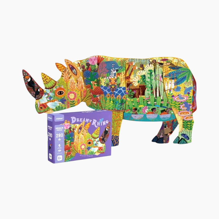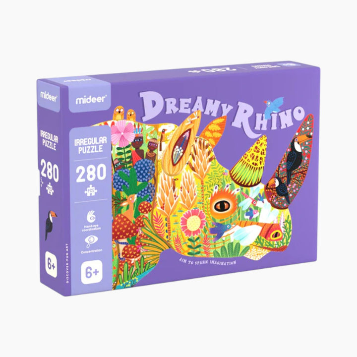 Embark on a captivating jungle adventure with the Mideer Large Animal Shaped Puzzle Dream Rhinoceros. This uniquely shaped 280-piece puzzle transforms playtime into an immersive experience, offering a delightful challenge for young minds.