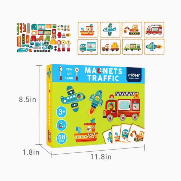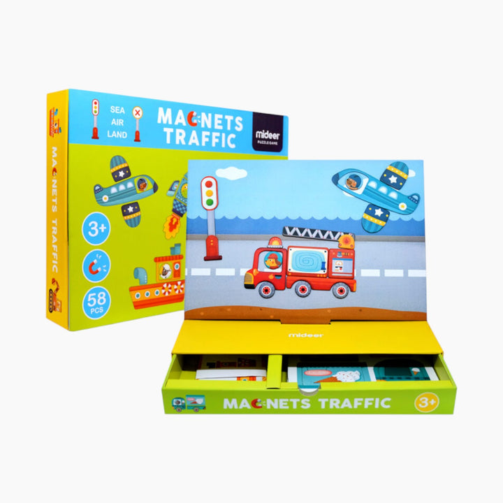 Ignite your child's imagination and foster essential cognitive skills with the Mideer Magnetic Traffic Game, thoughtfully designed for children aged 3 and up. This beautifully crafted, book-shaped playset opens up a vibrant world of automotive exploration, encouraging creative storytelling and problem-solving through engaging magnetic play.