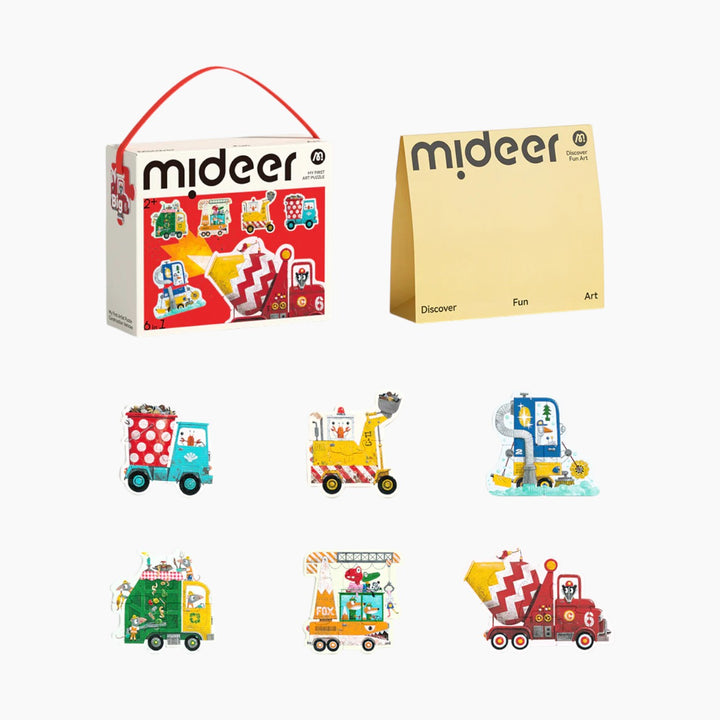 Ignite your child's imagination with the Mideer My First Artist Puzzle: Construction Vehicles. This delightful puzzle set, designed for curious minds aged 2 and up, introduces little ones to the bustling world of construction through engaging, artist-created visuals.