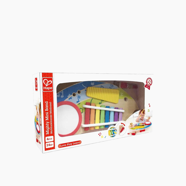 Introduce your little one to the world of music with the Mighty Mini Band, an all-in-one musical play table crafted for toddlers. Designed to spark creativity and develop sensory skills, this wooden musical table includes a variety of engaging instruments. Ideal for children aged 12 months and up, its compact and adjustable design makes it perfect for any play space while ensuring safe, moderate sound levels for young ears.