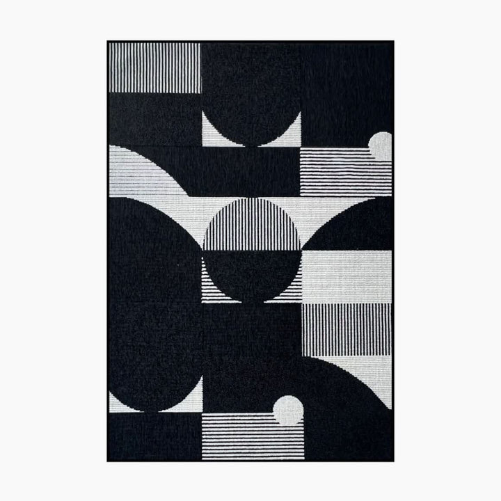 السجادة الهندسية الحديثة باللونين الأبيض والأسود تضفي أشكالاً جريئة وجرافيكية على أرضيتك، وتضيف لمسة معاصرة مذهلة. مثالية للديكورات الداخلية الحديثة التي تحتاج إلى نقطة محورية بصرية. تتميز هذه السجادة بتصميم هندسي جريء باللونين الأبيض والأسود، مما يضفي جاذبية بصرية على أي غرفة. إنها مثالية للديكور الحديث والبسيط، حيث توفر المتانة وسهولة الصيانة، مع توفير ملمس ناعم للاستخدام المريح.
