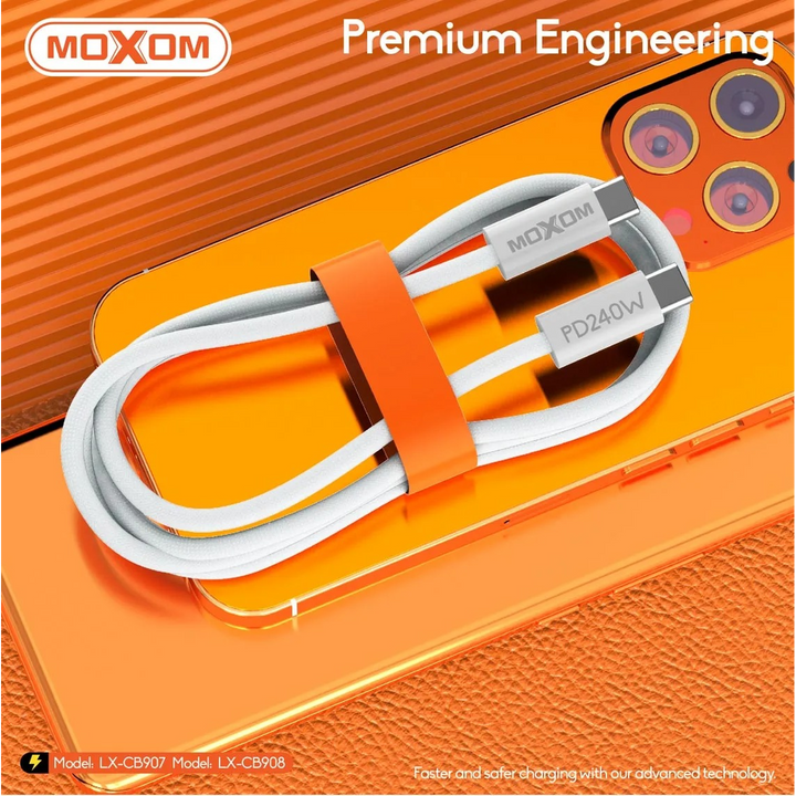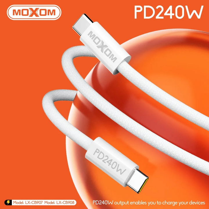 Experience unparalleled power and speed with the Moxom LX-CB907 Super Fast Charging Cable. Engineered for the demands of modern devices, this 1-meter Type-C to Type-C cable delivers an astonishing 240W of power, ensuring your devices charge in record time.