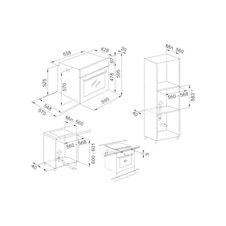 فرن متعدد الوظائف مع لوحة تحكم رقمية أكوا كلين 71 لتر 60 سم
