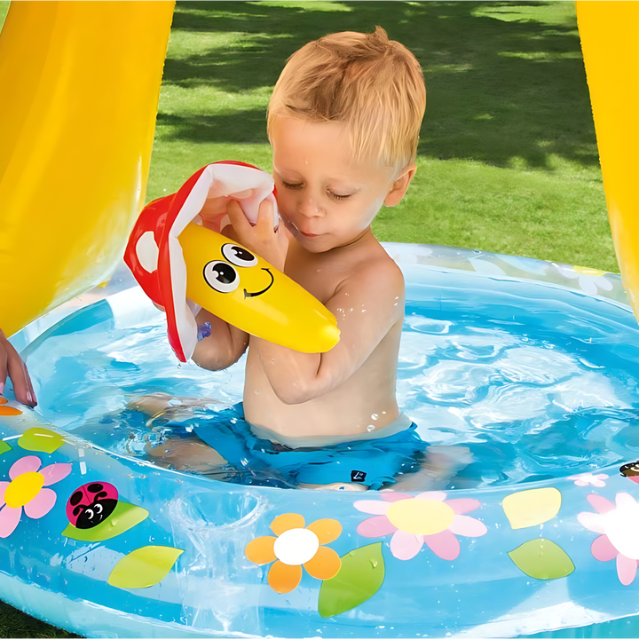 تجمع بركة سباحة الأطفال من إنتكس على شكل فطر (موديل 57114) بين المتعة والأمان في تصميم واحد جذاب. تتميز هذه البركة القابلة للنفخ بمظلة شمسية ملونة على شكل فطر ورسومات مرحة، مما يوفر مساحة مثالية للأطفال الصغار للاستمتاع برذاذ الصيف المنعش مع الحفاظ على سلامتهم من أشعة الشمس. مثالية للاستخدام في الحديقة أو الفناء، فهي توفر منطقة لعب مائية ممتعة وآمنة للأطفال الصغار.