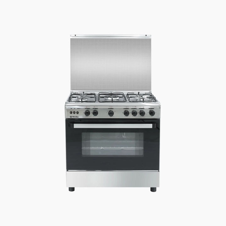 موقد نارا غاز 80 سم لا يحتوي على لوحة تنظيف ذاتية تحفيزية، شواية بباب مغلق، مروحة تبريد، سخان أطباق، شعلة مزدوجة، طلاء مينا سهل التنظيف، فرن كهربائي وشواية مع ترموستات، مروحة، وضع الحمل الحراري القسري، شبكة، شعلات ديفيندي إيطالية، سيخ دوار، أرفف منزلقة تلسكوبية، صينية في تجويف الفرن، شعلة توربو، سطح من السيراميك الزجاجي. تبلغ سعته 80 سم، وعمقه 60 سم، وعرضه 80 سم. يتميز بـ 5 شعلات، ومستويين زجاجيين في الباب، ويأتي بلون الفولاذ المقاوم للصدأ اللامع. العلامة التجارية هي نارا.