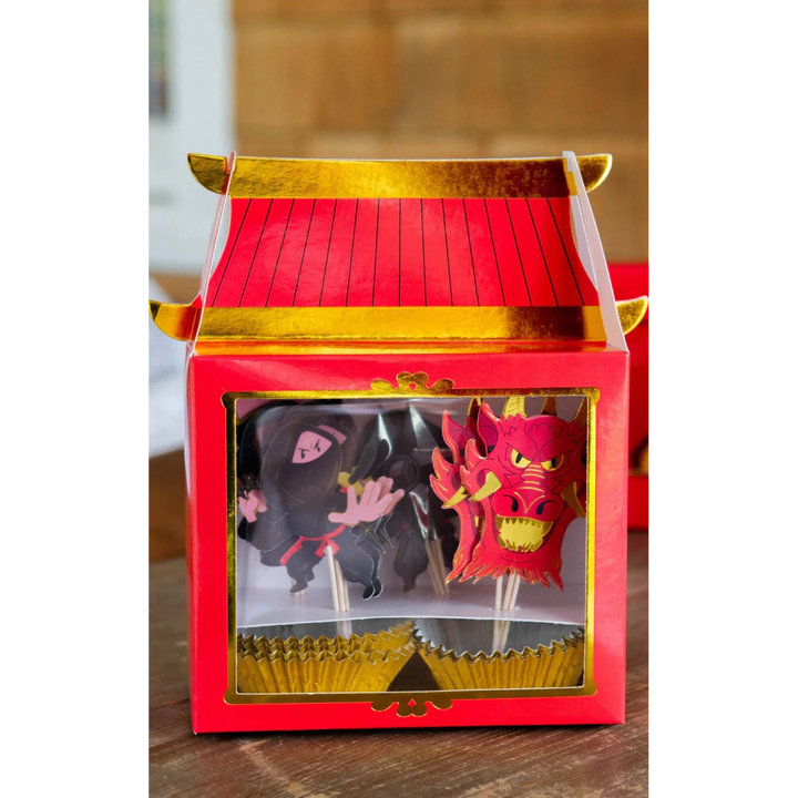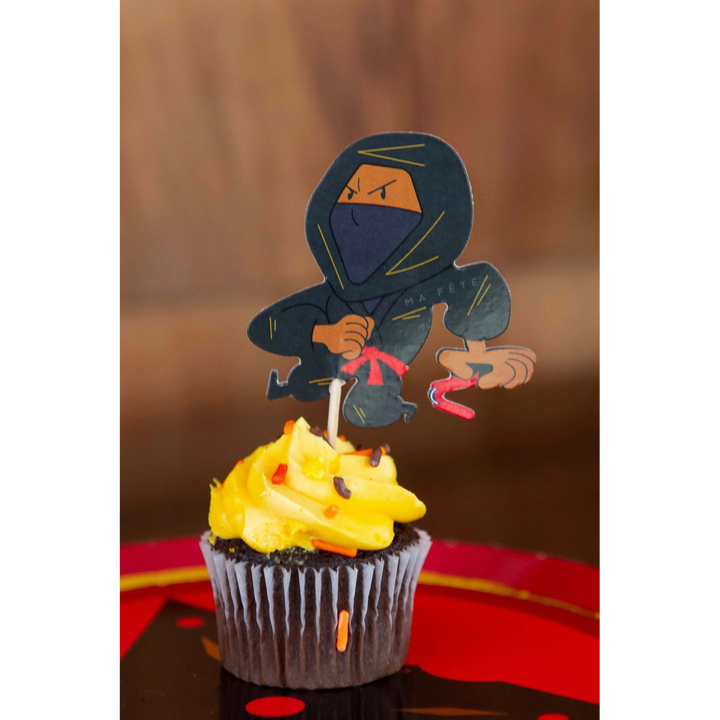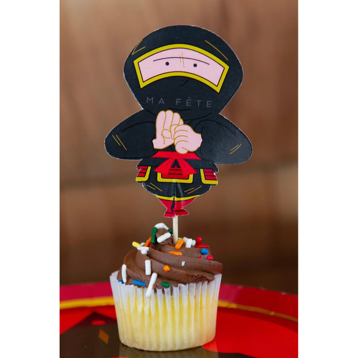 اجعلوا كعككم نجم حفلتكم مع زينة الكب كيك الرائعة هذه المستوحاة من النينجا! تتضمن هذه المجموعة تصاميم متنوعة ومبهجة، تتضمن نينجا وتنينًا شرسًا ونجومًا. تأتي الزينة مع أكواب كب كيك ذهبية وتغليف فريد، مما يضفي لمسة من الأناقة والإثارة على احتفالكم. بتفاصيلها الذهبية والفضية، تُعد هذه الزينة مثالية لأي حفلة عيد ميلاد أو مناسبة خاصة.