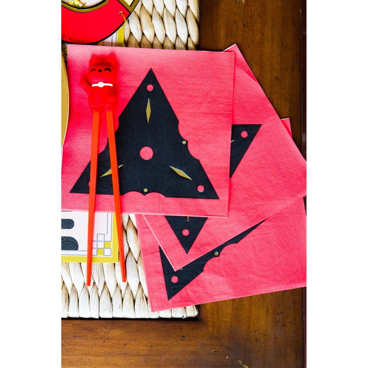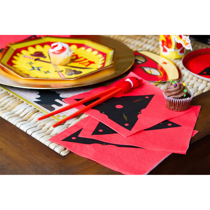 قطعة أساسية في أي حفلة، متوفرة بشكل مربع كلاسيكي، مزينة بنجوم النينجا التقليدية، مما يزيد من متعة تنظيف الأيدي المتسخة ويكمل الديكور المستوحى من الثقافة اليابانية.