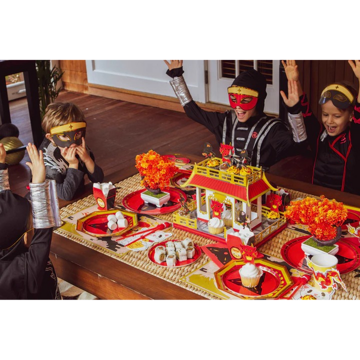 استمتع بحلويات عيد ميلاد شهية مع 8 أطباق عشاء بتصاميم سيوف النينجا، مزينة برقائق فضية وذهبية لتضفي على طعام حفلتك لمسةً من المرح! تفاصيل المنتج: -...