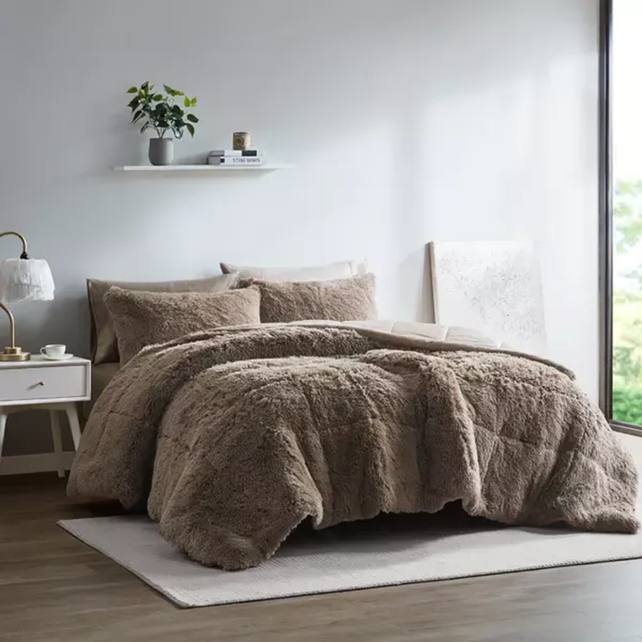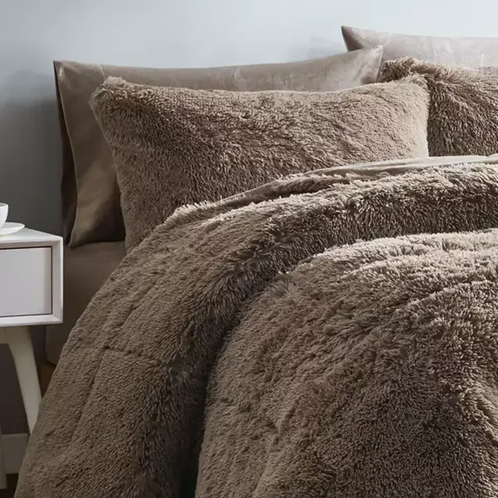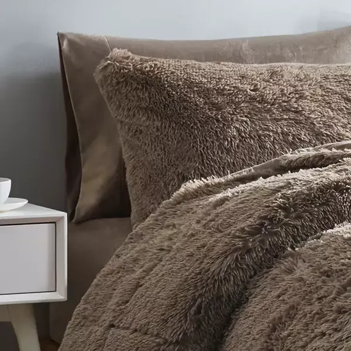 • Experience luxurious softness with a stylish, long shaggy faux fur texture that adds a touch of opulence to your bedding.
