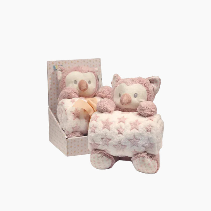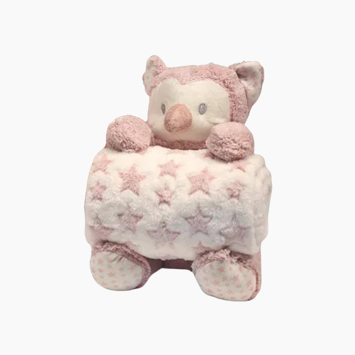 لعبة بومة للأطفال مع بطانية باللون الوردي