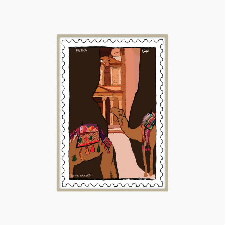نقدم لكم العمل الفني الرائع "البتراء" للفنانة دينا عكاشة، الذي يجمع ببراعة بين العملية والأناقة. تُعدّ هذه القطعة الفنية تكريمًا لأبرز كنوز الأردن. طُبعت هذه اللوحة بحجم صغير ٢١×٣٠ سم، ورُكّبت بأناقة في إطار من الخشب الطبيعي. تُجسّد هذه اللوحة احتفالًا نابضًا بالحنين والتراث والسفر والعجائب الخالدة.