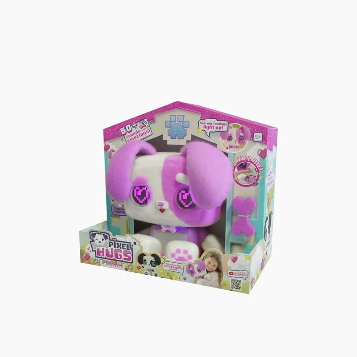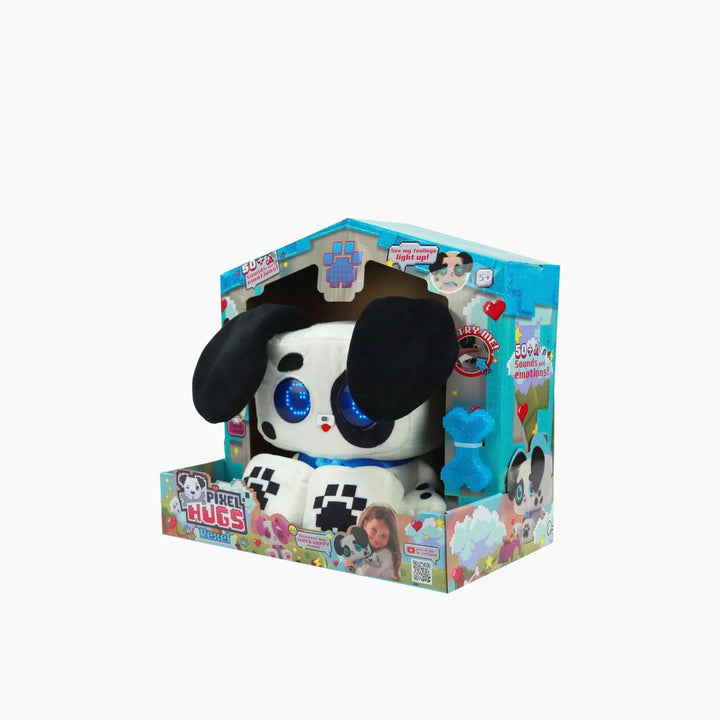 A delightful fusion of retro video game charm and cuddly comfort. This interactive plush puppy features expressive LED eyes and a soft, huggable body, making it an ideal companion for children aged 3 and up. Whether it's playtime or cuddle time, Pixel Hugs Blue brings joy and imagination to life.