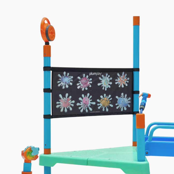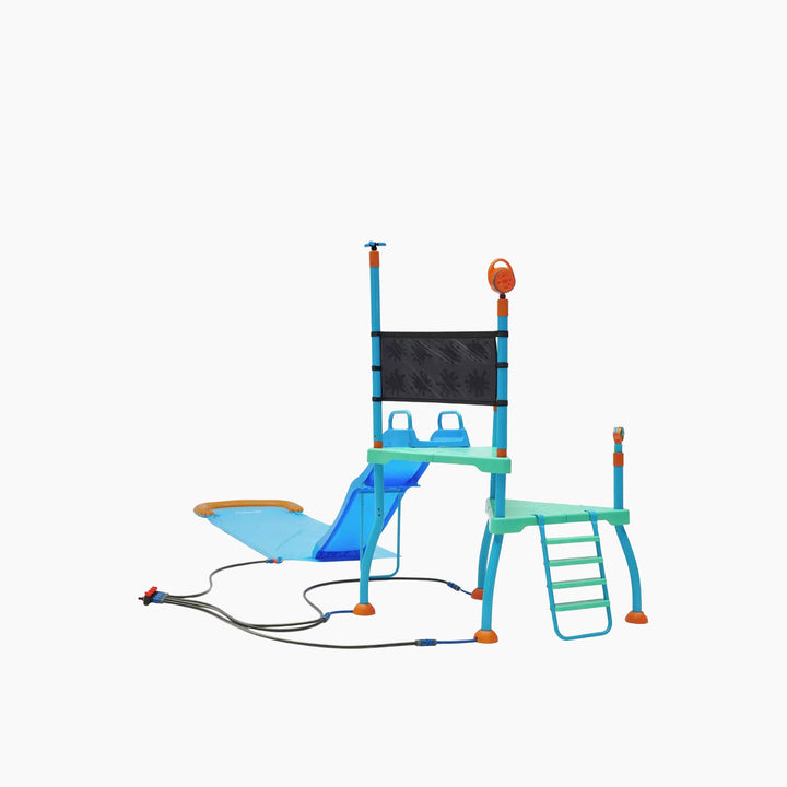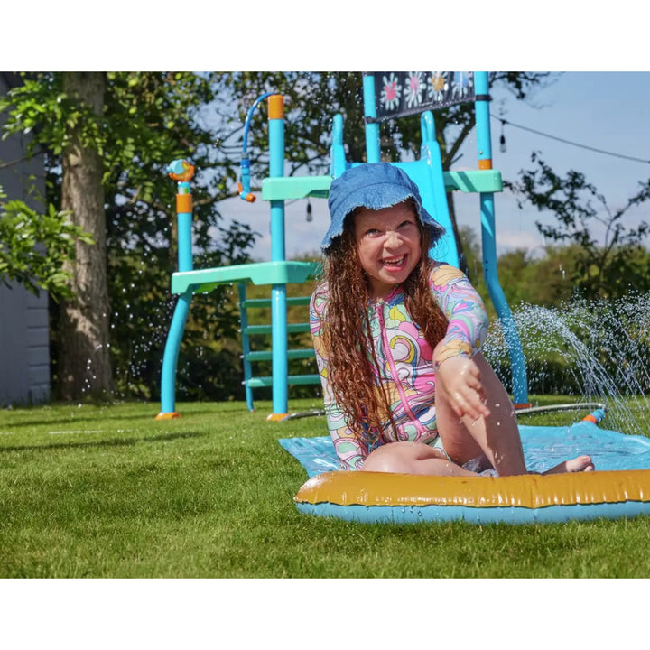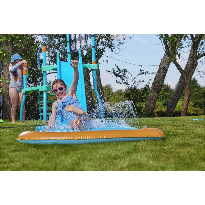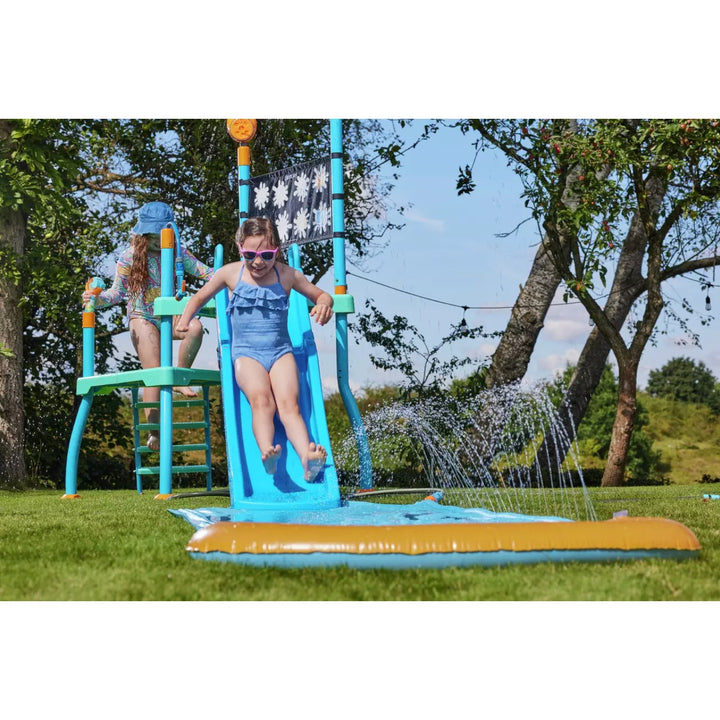- Includes a captivating water reveal colouring wall, a 4ft slide, and a splash pad with built-in sprinklers.