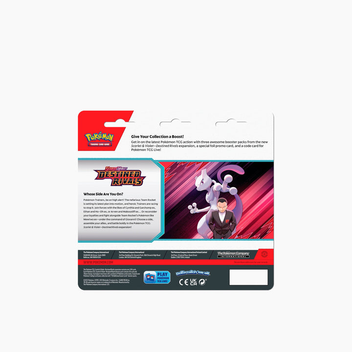 Prepare for an epic clash of ideals with the Pokémon TCG: Scarlet & Violet—Destined Rivals Three Booster Blister Pack. This collection plunges you into a world where loyalties are tested and fierce battles are imminent, featuring iconic characters and their powerful Pokémon partners.