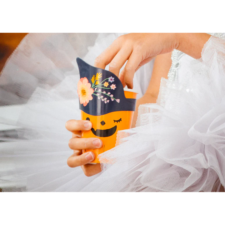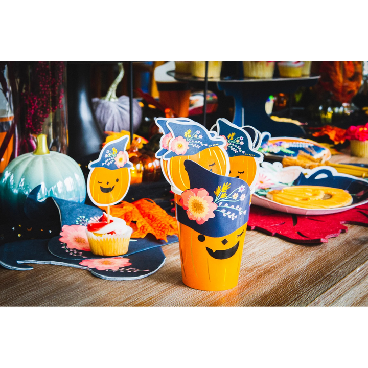 هذه الأكواب الرائعة مصنوعة من ورق صديق للبيئة، مع غلاف أنيق على شكل فانوس جاك أو-لانترن - مثالية لمشروبات الهالوين! مزينة بتصميم قبعة ساحرة زهرية لإضفاء لمسة فريدة على ديكور الهالوين التقليدي، هذه الأكواب هي الإضافة المثالية لأي حفلة مليئة بالمرح!