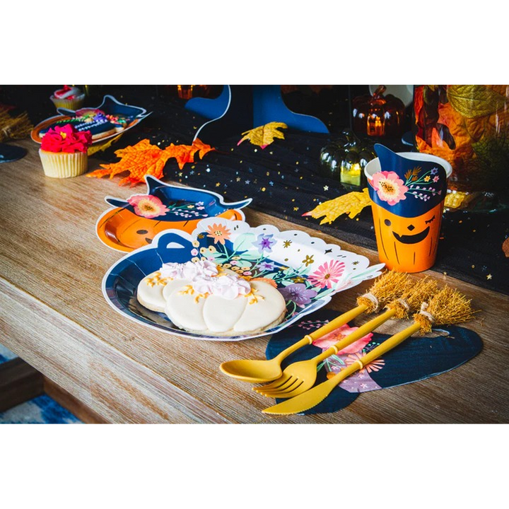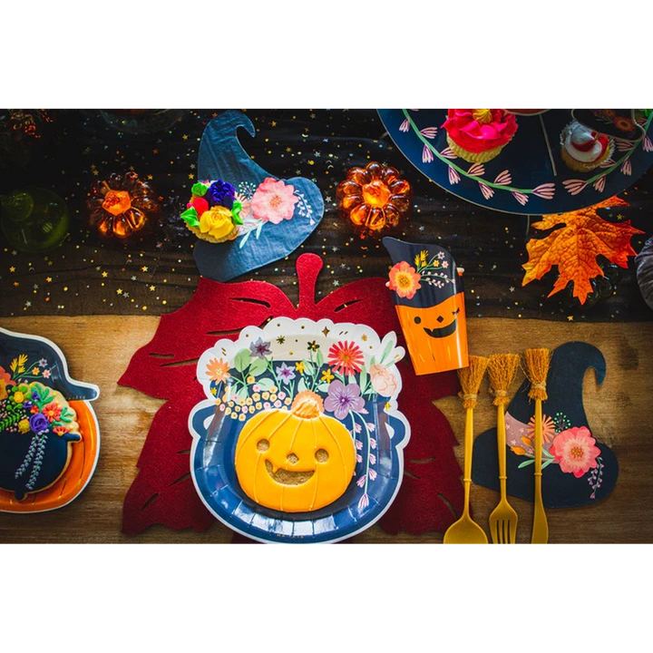 هذه الأكواب الرائعة مصنوعة من ورق صديق للبيئة، مع غلاف أنيق على شكل فانوس جاك أو-لانترن - مثالية لمشروبات الهالوين! مزينة بتصميم قبعة ساحرة زهرية لإضفاء...