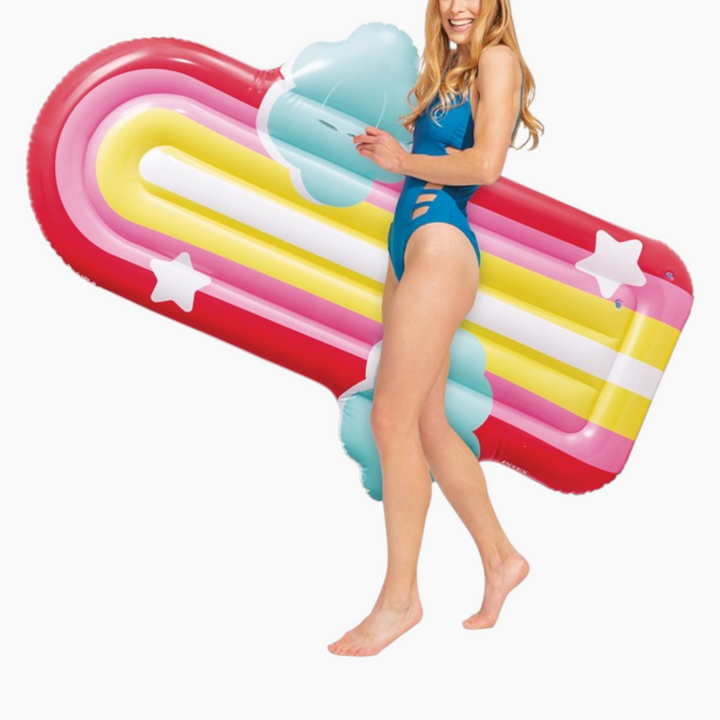 Bring a touch of dreamy fun to any pool day. Featuring a soft white cloud base topped with a vibrant rainbow arch, this eye-catching inflatable float combines comfort and playful design for the ultimate poolside relaxation. Perfect for lounging, sunbathing, or taking stunning summer photos, it’s an instant favorite for both teens and adults.