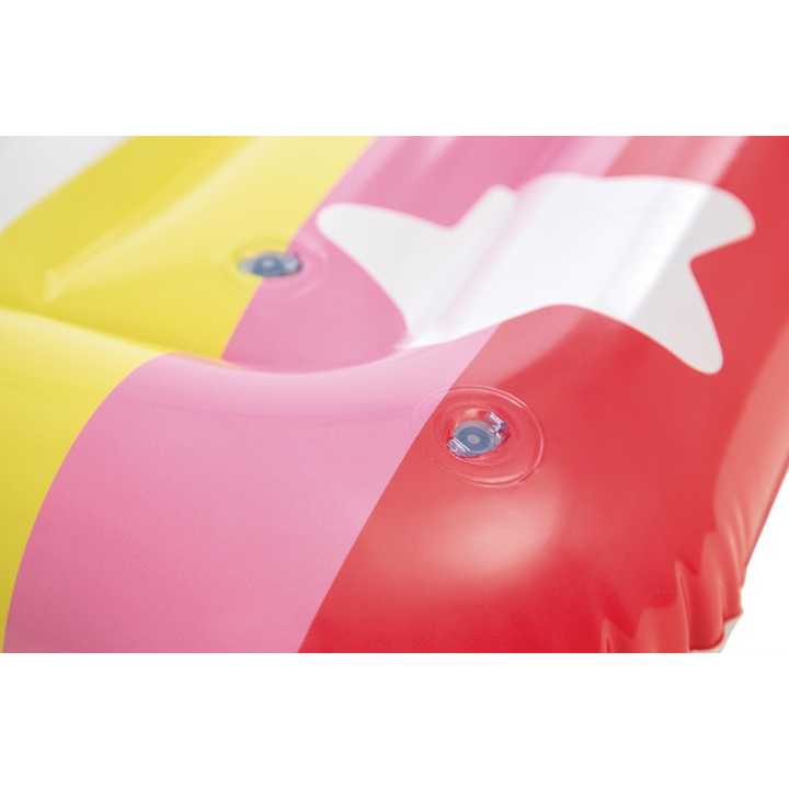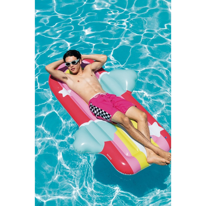 Crafted from durable PVC material, the Intex Rainbow Cloud Float offers reliable support and a spacious surface for comfortable use. Ideal for users aged 14 and above, it’s easy to inflate, deflate, and transport—making it a colorful must-have for every pool party or vacation.
