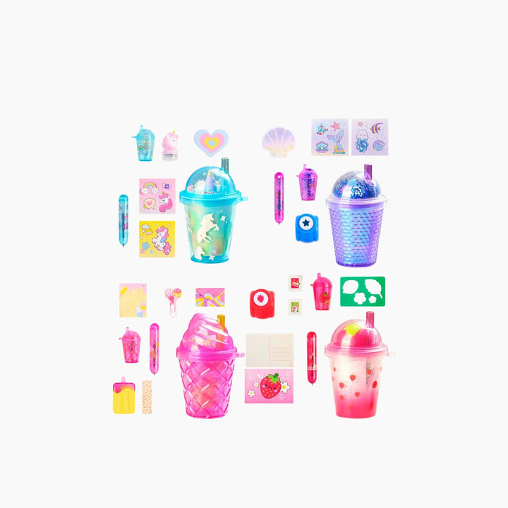 • Each cup contains collectible accessories, including mini stationery, charms, or stickers.