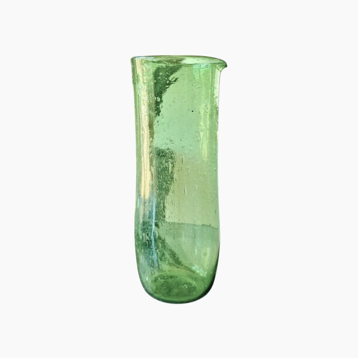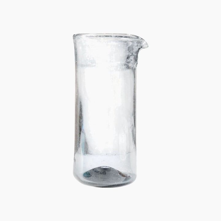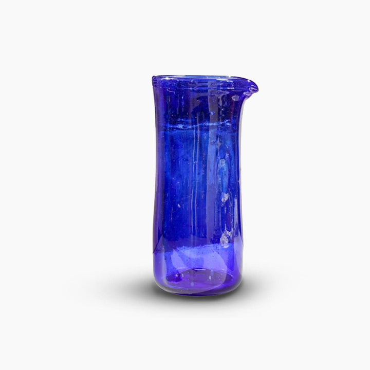 يضفي إبريق الزجاج المعاد تدويره الأزرق هذا أناقة وتصميمًا صديقًا للبيئة على طاولتك، حيث يجمع بين التطبيق العملي والأناقة النابضة بالحياة.