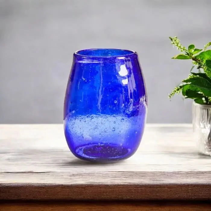 يجمع هذا الكوب الزجاجي المعاد تدويره باللون الأزرق بين اللون المذهل والحرفية المستدامة، وهو مثالي لتعزيز مجموعة أدوات الشرب الخاصة بك.