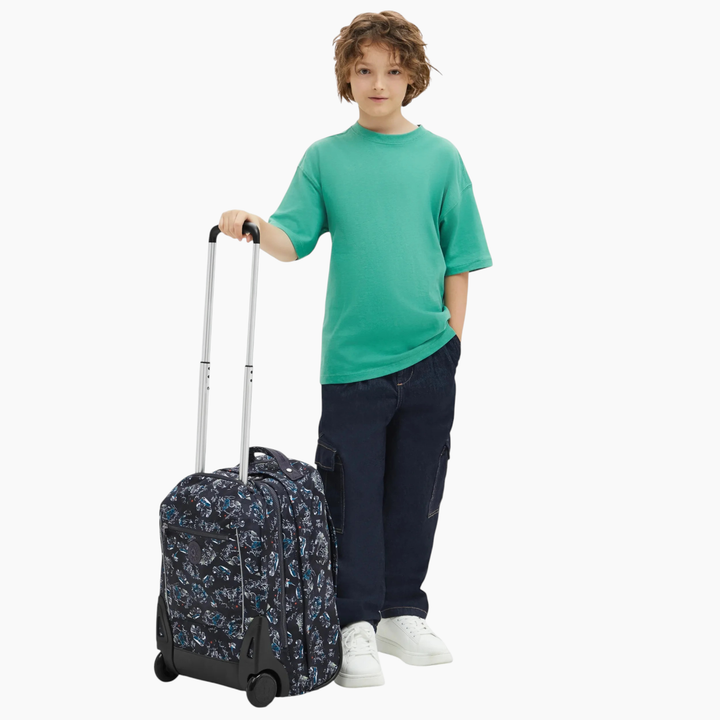 حقيبة ظهر بعجلات كبيرة مصممة للأطفال النشيطين الذين يحبون الحركة، مثالية لكل من المدرسة والمغامرات السفر. تصميمها بعجلتين يضمن سهولة التحرك، بينما توفر جيوبها المتعددة وحجرة الكمبيوتر المحمول المدمجة تنظيمًا ممتازًا. الأحزمة المبطنة والظهر يوفران راحة أثناء الحمل، بالإضافة إلى مقبض العربة القابل للسحب ومقبض الحمل العلوي للتنوع.