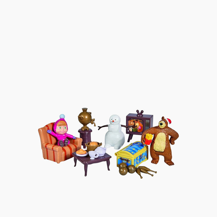 - Official Masha and the Bear product- Includes: 1 house, 1 Masha figure, 1 snowman, 1 Bear figure, and accessory set
