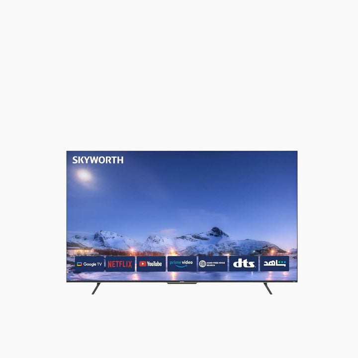 يقدم تلفزيون Skyworth TV 75 شاشة مقاس 75 بوصة مع منصة Google TV Android. ويتميز بثلاثة منافذ HDMI ومنفذين USB وتحكم صوتي عن بعد. يأتي التلفزيون باللون الأسود، مع فلاش 2 جيجا بايت وذاكرة 16 جيجا بايت. ويدعم DVB-T/T2 لاستقبال التلفزيون الرقمي والتحكم الصوتي عن بعد من Google.