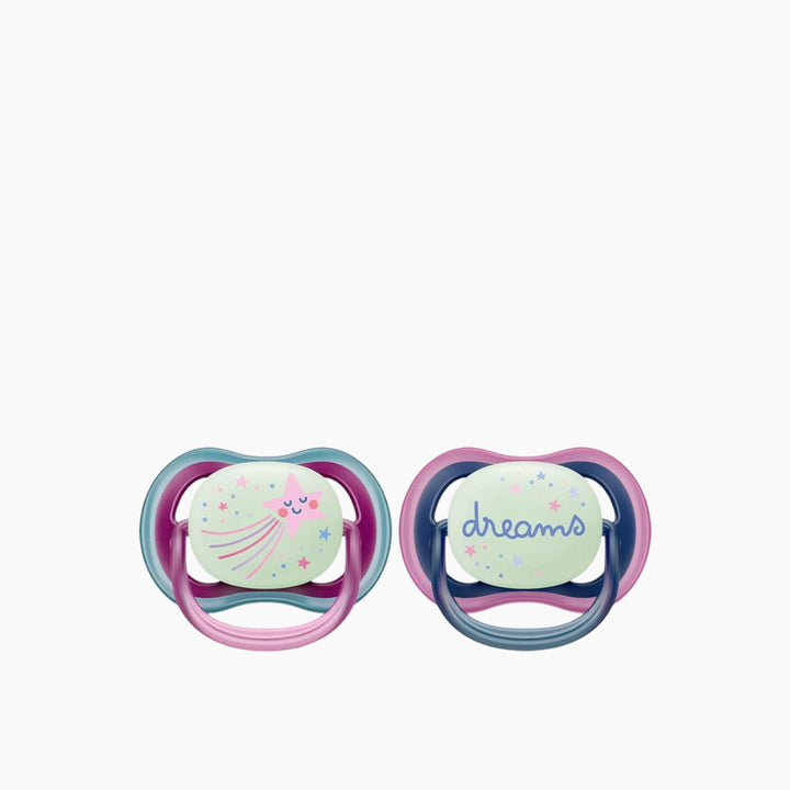 Delivers gentle nighttime comfort in a thoughtfully designed, breathable pacifier set that glows in the dark for easy retrieval. Ideal for babies aged 6 to 18 months, this two-pack pairs soothing functionality with hygienic ease and sustainable design.