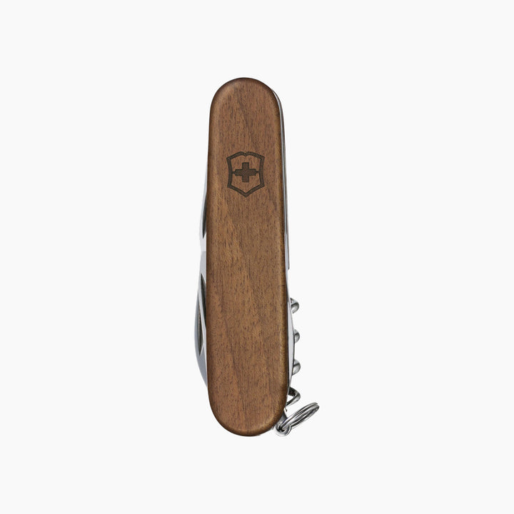 Discover the elegance and functionality of the medium pocket knife with walnut wood scales. This Swiss Army Knife seamlessly combines style and versatility, featuring 10 essential tools encased in durable and naturally grained walnut wood. Each knife exudes a unique, handcrafted feel, making it a noble companion for everyday adventures, whether in your pocket or toolbox.