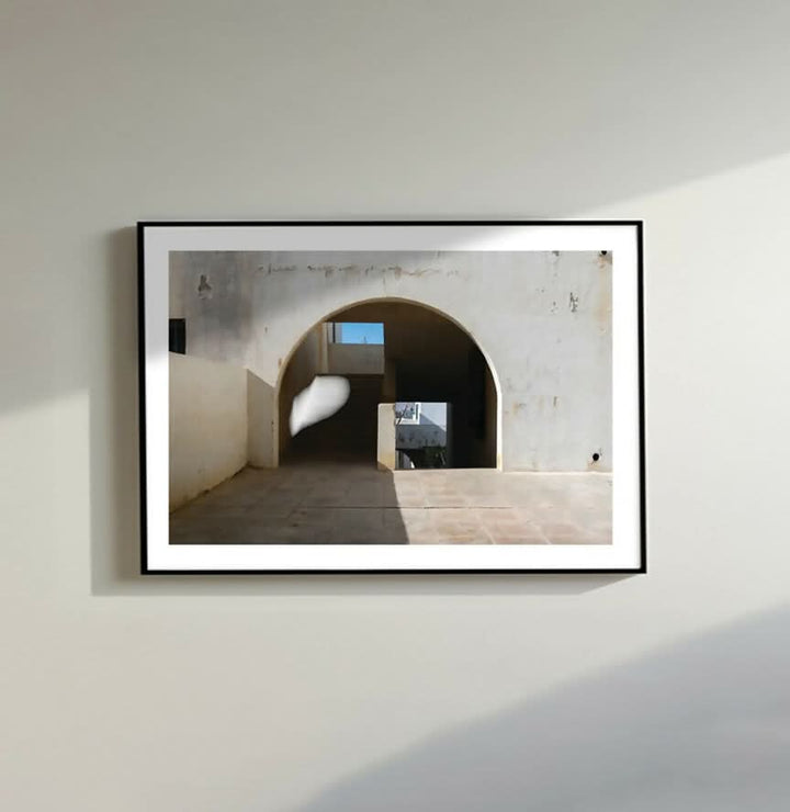نقدم لكم العمل الفني المذهل "مكدس" للفنان مجد حجاوي، الذي يجمع ببراعة بين العملية والأناقة. هذه القطعة الفنية استكشاف هادئ للفضاء والتناظر والإيقاع المعماري. "مكدس" لمجد حجاوي هي صورة آسرة التُقطت في فناء خرساني مضاء بنور الشمس. تكشف عن مناظير متعددة الطبقات مؤطرة بقوس مركزي، حيث يُقدم كل مستوى لمحة جديدة عن الهندسة الحضرية. إضافةً إلى ذلك، يُضيف عنصر سريالي رقيق - قطعة قماش بيضاء عائمة - تباينًا شاعريًا، يكاد يكون حالمًا، للهيكل الصلب. يُثير هذا العمل الفني مواضيع الغياب والوقت والذاكرة المعمارية، مما يجعله إضافةً مُحفزةً للتفكير لأي مساحة.